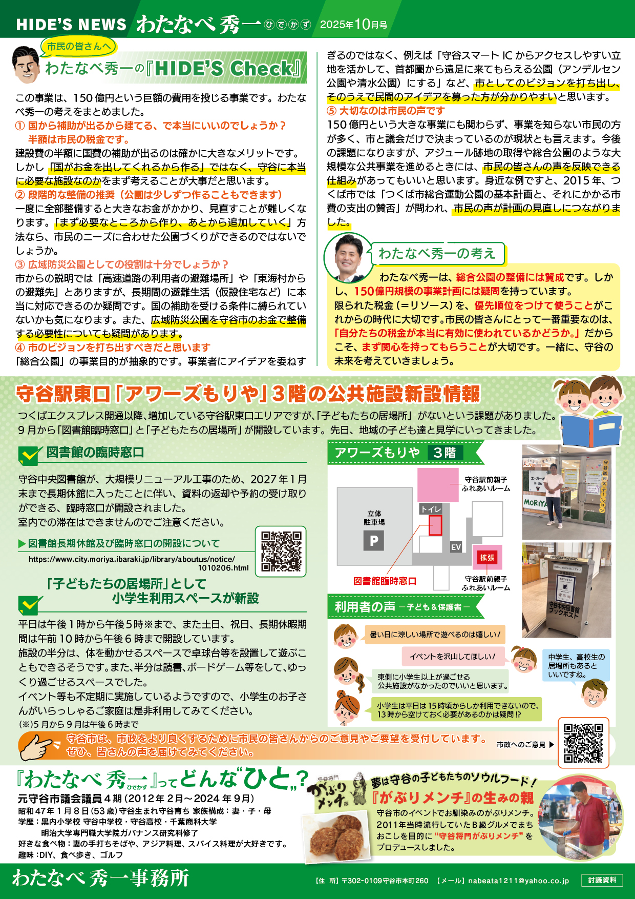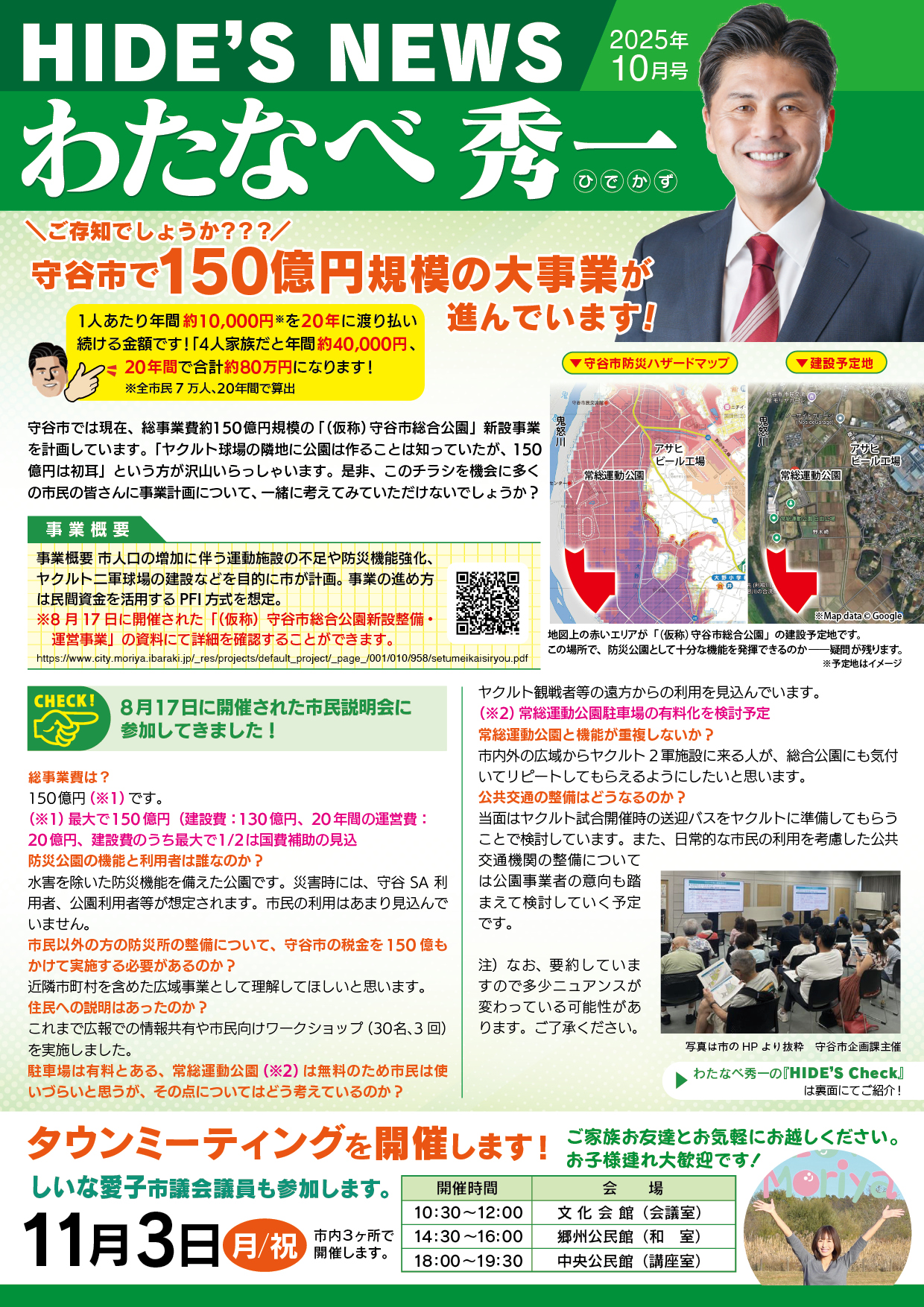 今回のテーマは「守谷市総合公園150億円プロジェクト」。